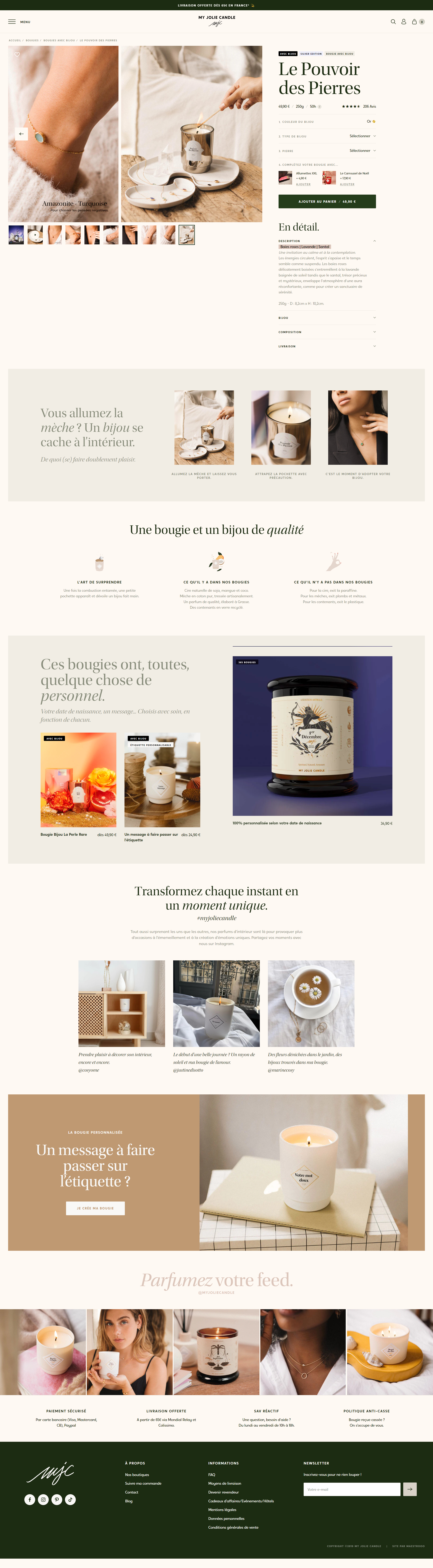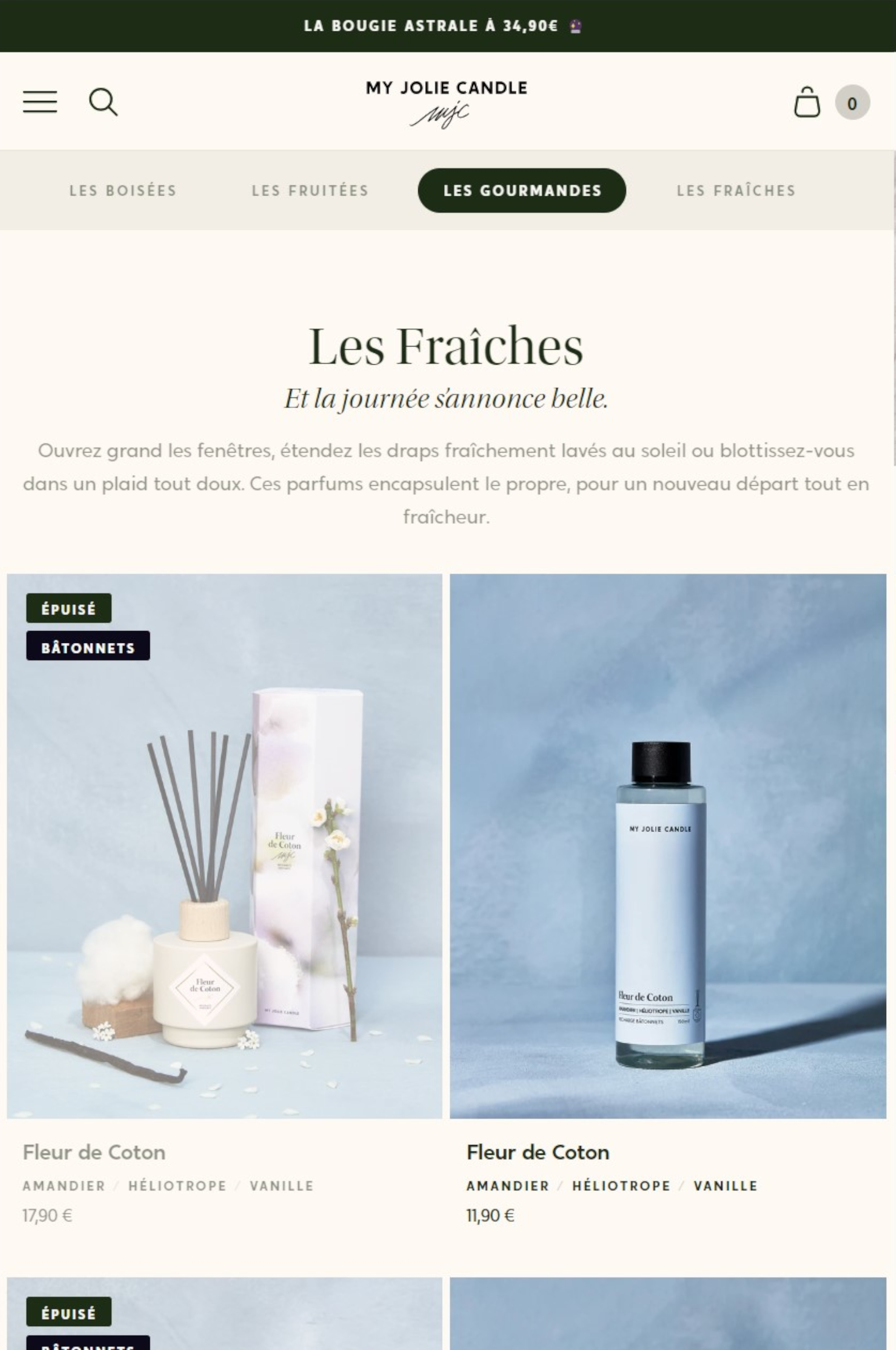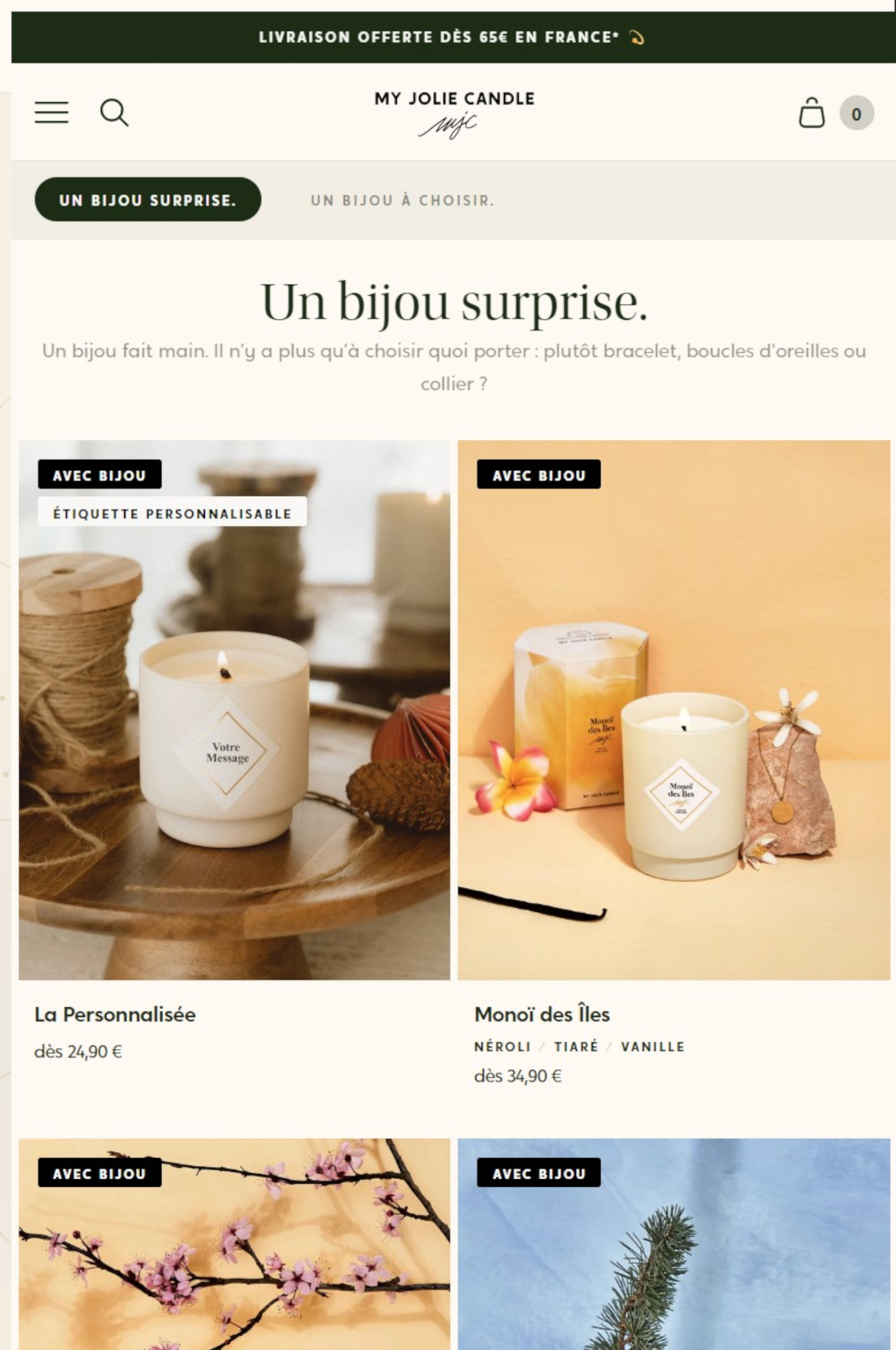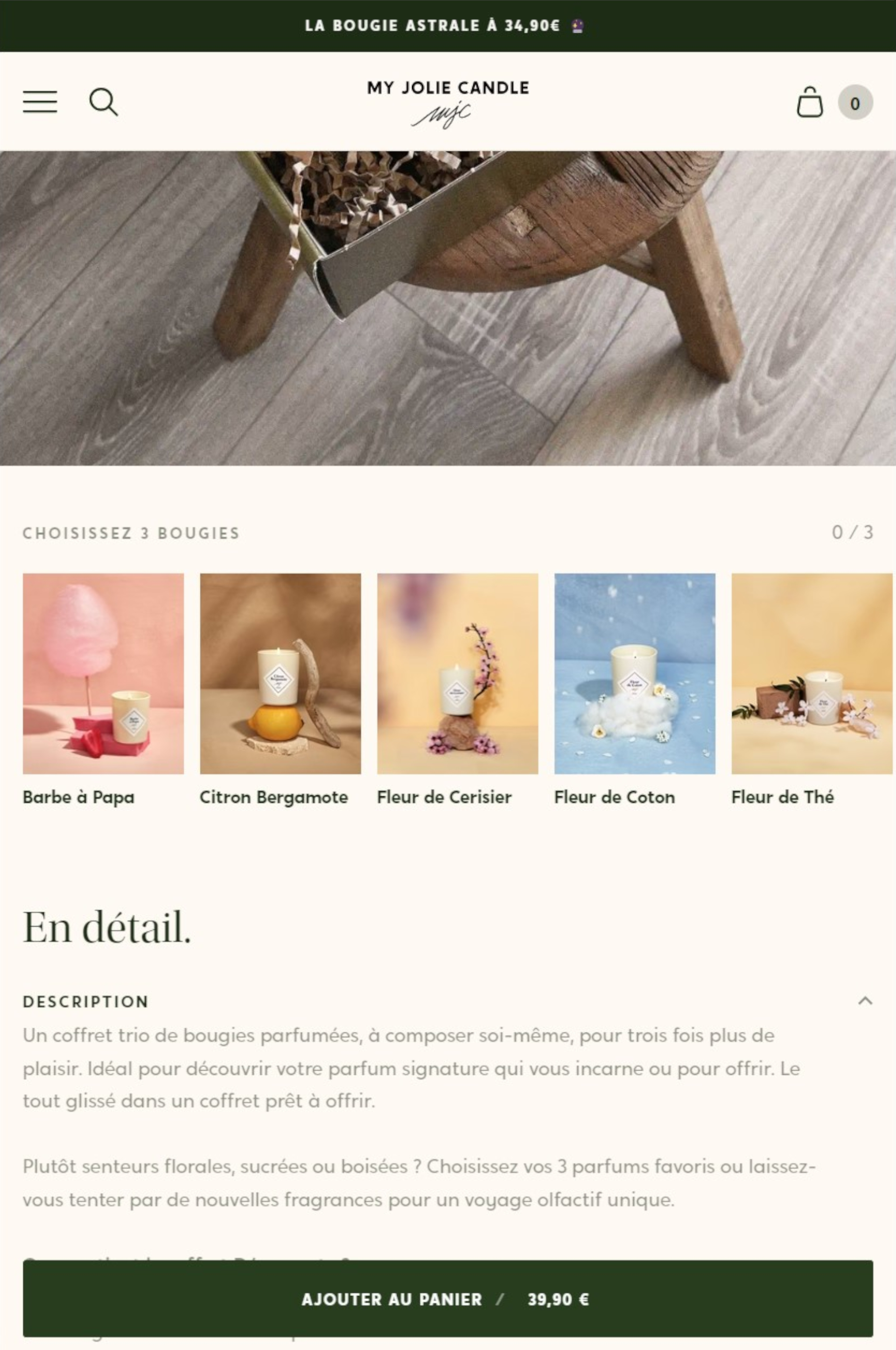 Conscients que plus de 70% des utilisateurs naviguent sur internet via leurs appareils mobiles, nous avons optimisé le site de My Jolie Candle pour une expérience utilisateur fluide sur tous les appareils, favorisant ainsi le confort de navigation et améliorant le référencement sur Google. La boutique en ligne est spécialement conçue pour répondre aux besoins des utilisateurs mobiles, assurant une expérience d'achat agréable et efficace.