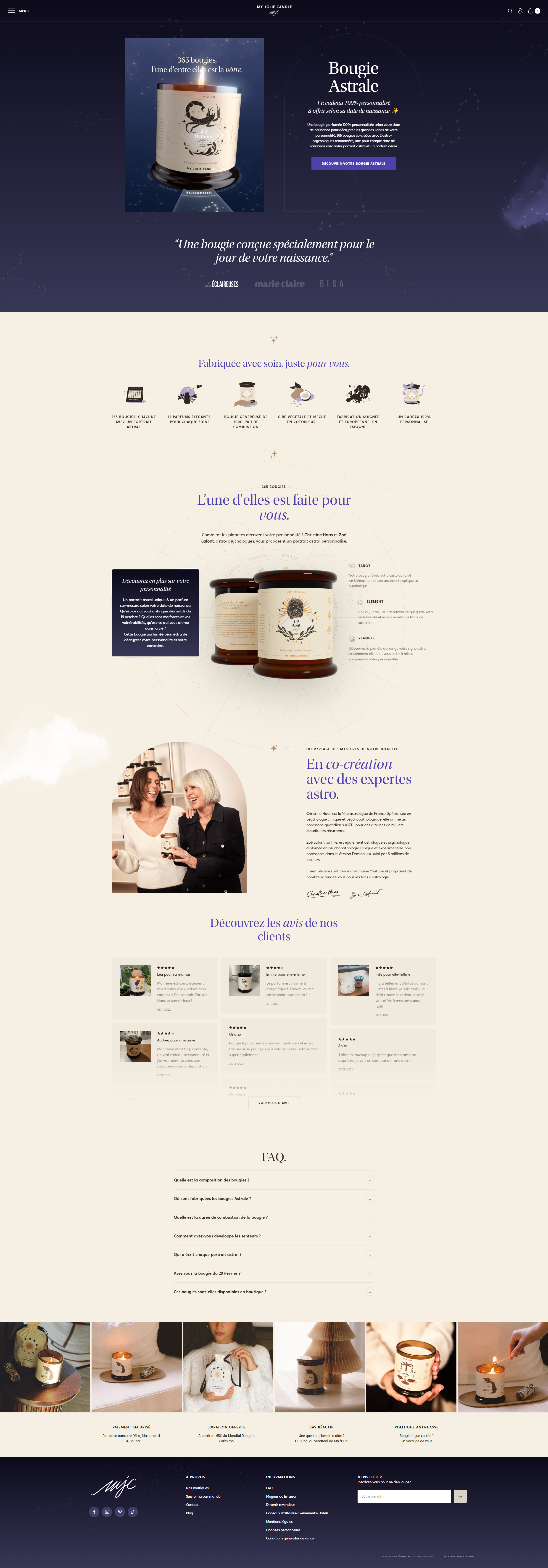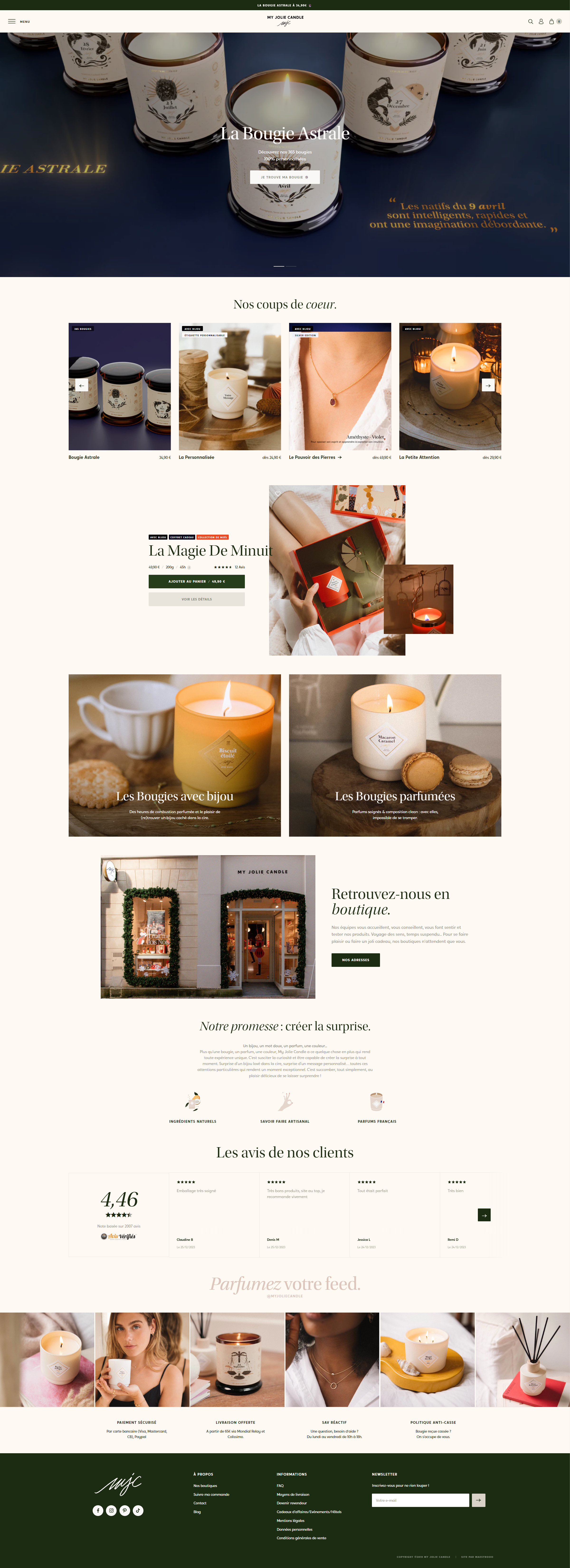 Le pionnier de la boutique en ligne de bougies ! Le site web proposé par l'agence Abweb offre une expérience complète, mettant en valeur l'intégralité de leur gamme grâce à des photographies professionnelles. Alliant esthétisme et fonctionnalités avancées, une plateforme d'administration complète a été intégrée, permettant de gérer l'immense boutique en ligne My Jolie Candle.